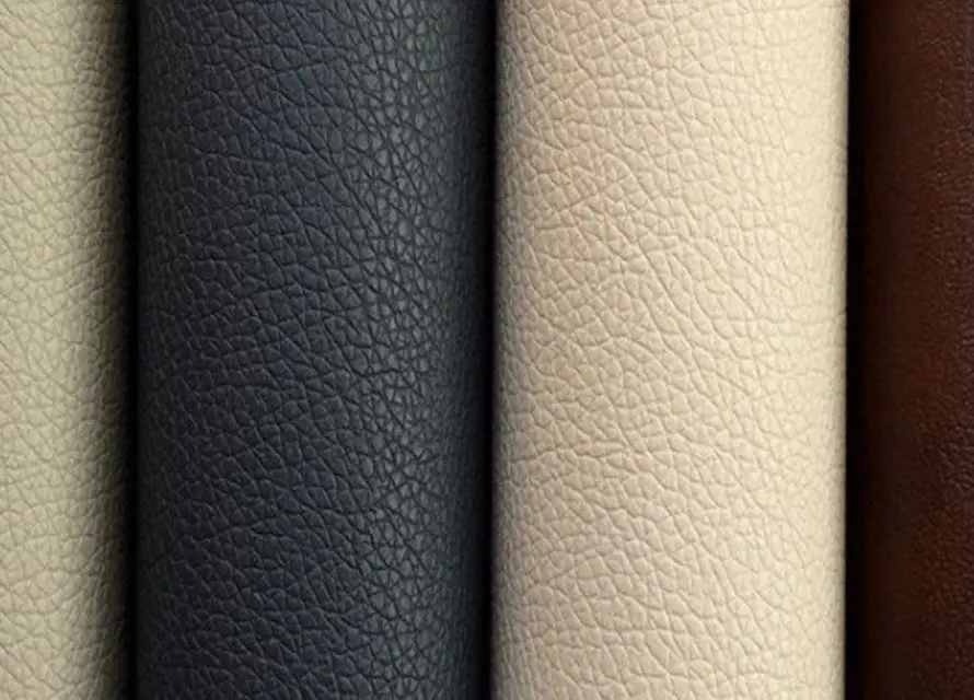 Real original leather, PU leatherite and suede finish materials.